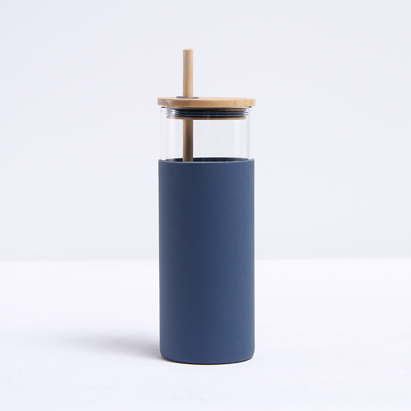 17oz straight glass tumbler cup with silicone protective sleeve,bamboo lid and straw_miki