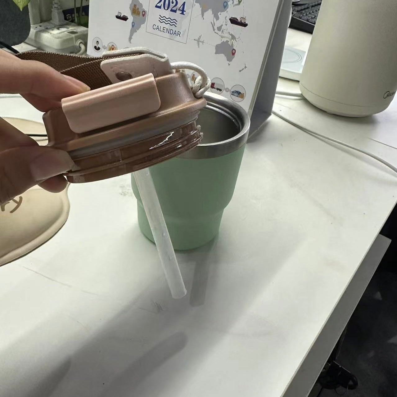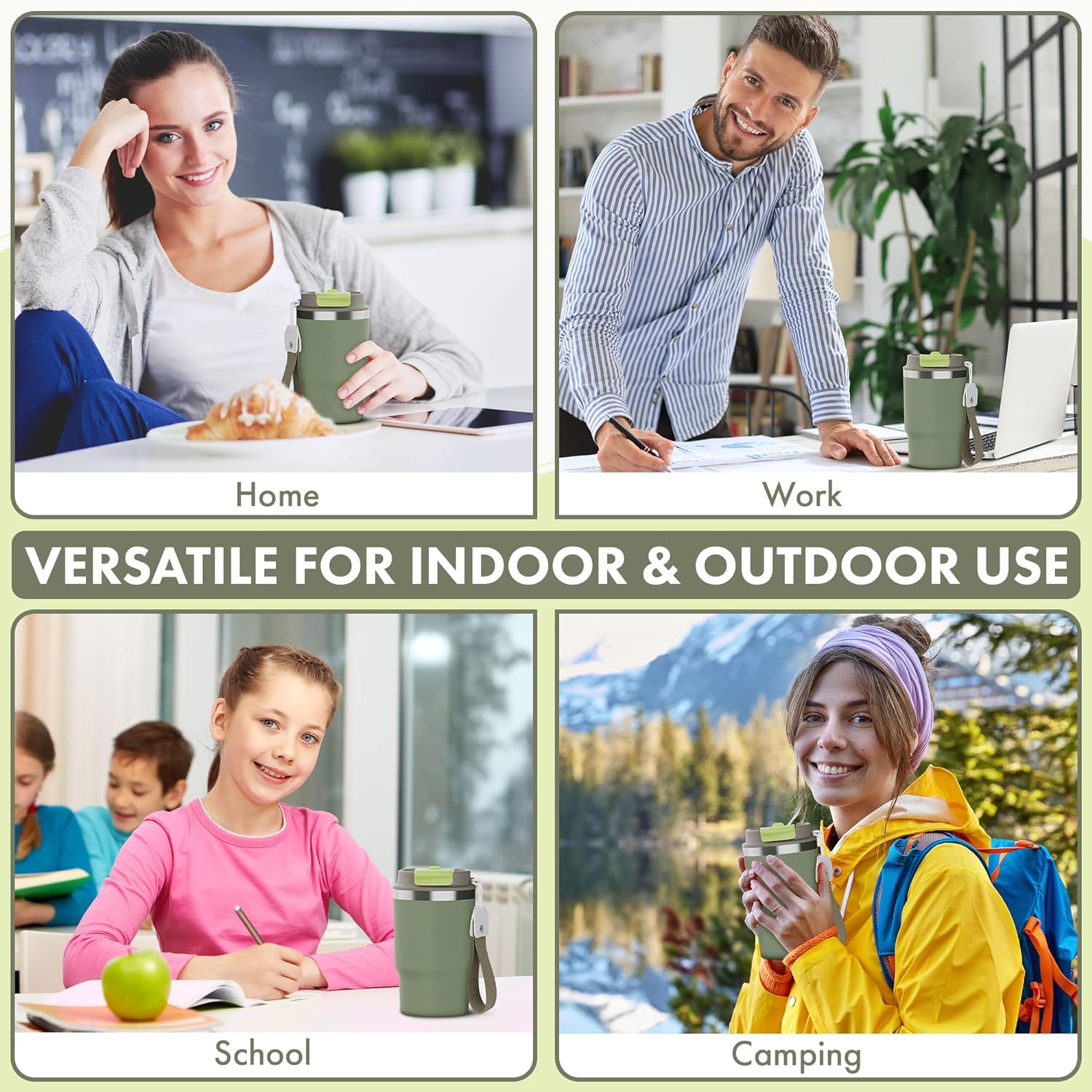 2-in-1 Lid 16oz Coffee Mug Double Wall Stainless Steel Vacuum Travel Mug with Strap_miki