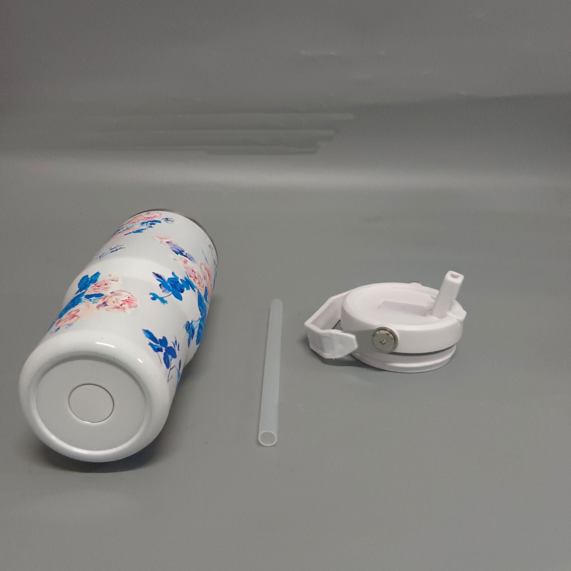 30oz Sliver Plate Love Shack Fancy Flower Flip Straw Water Bottles_ miki