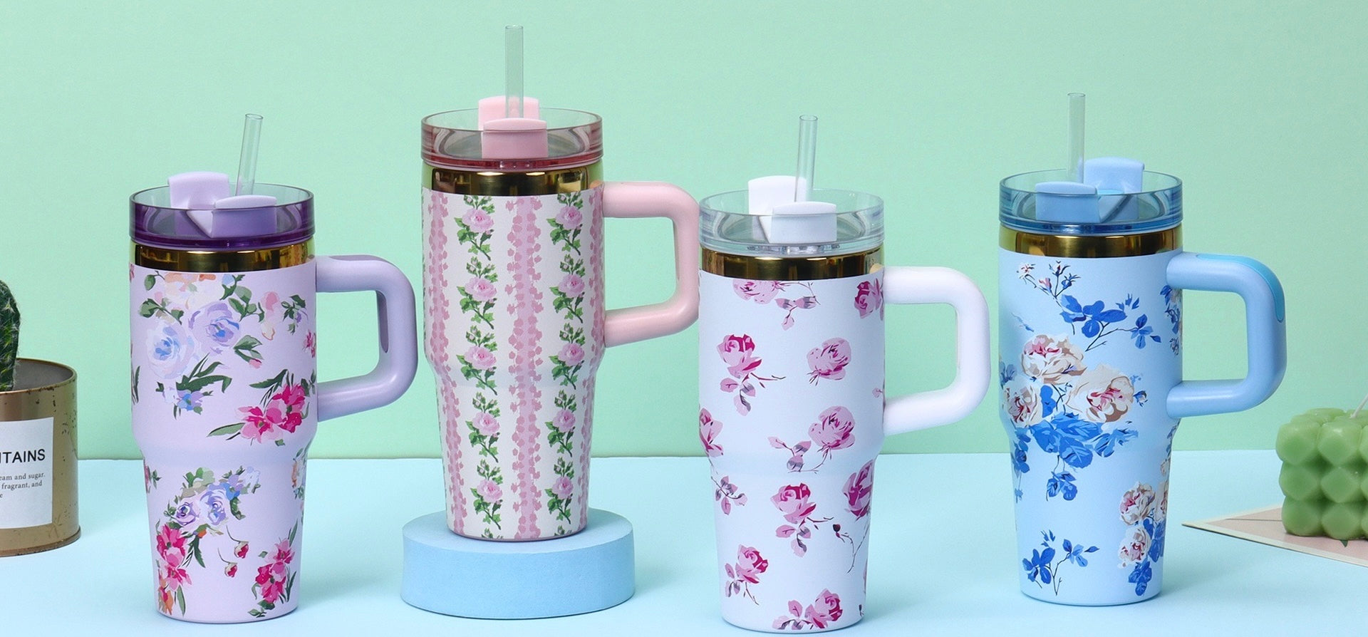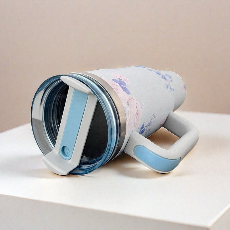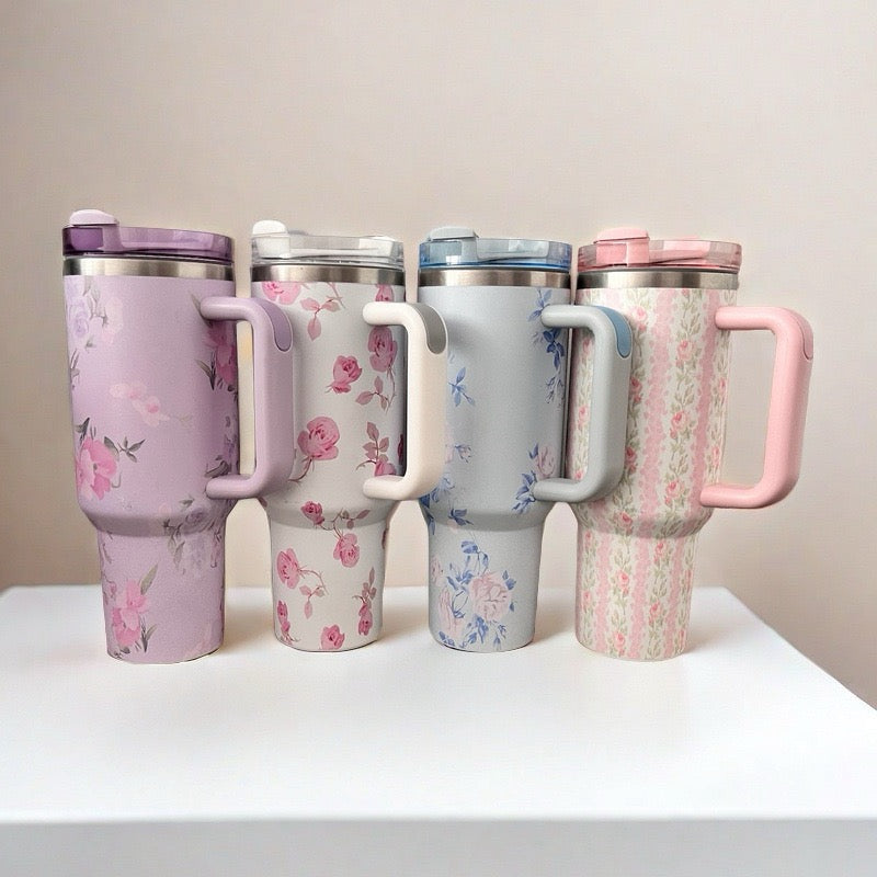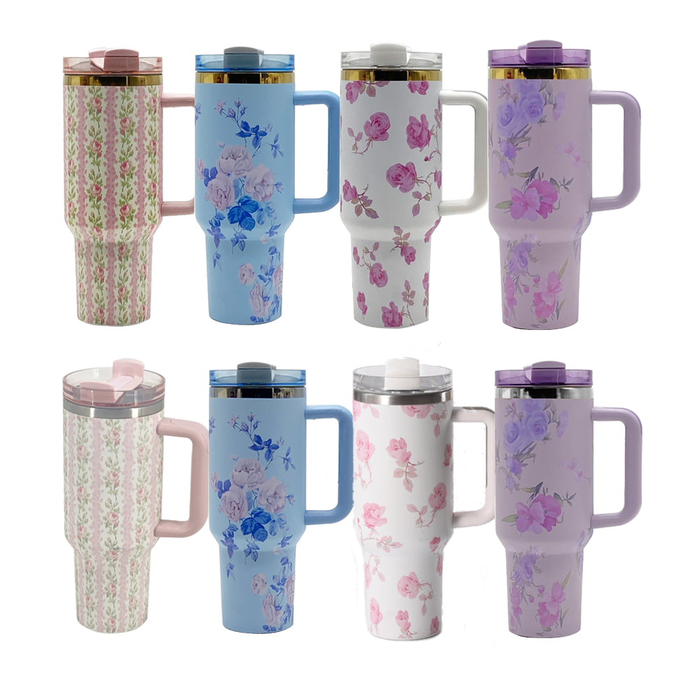 40oz Gold Plated Love Shack Fancy H2.0 Flower Quencher Tumblers with Removable Handle and Straw_ miki