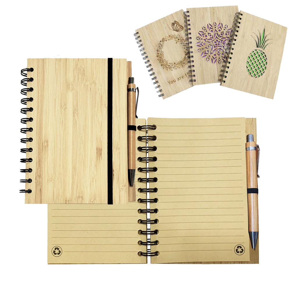 Blank Bamboo Notebook with Coil and Pen for Office Gifts _miki