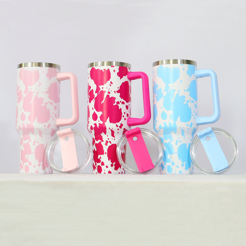 Cow Printed 40oz H1.0 Quencher Tumblers with Removable Handle and Straw_ miki