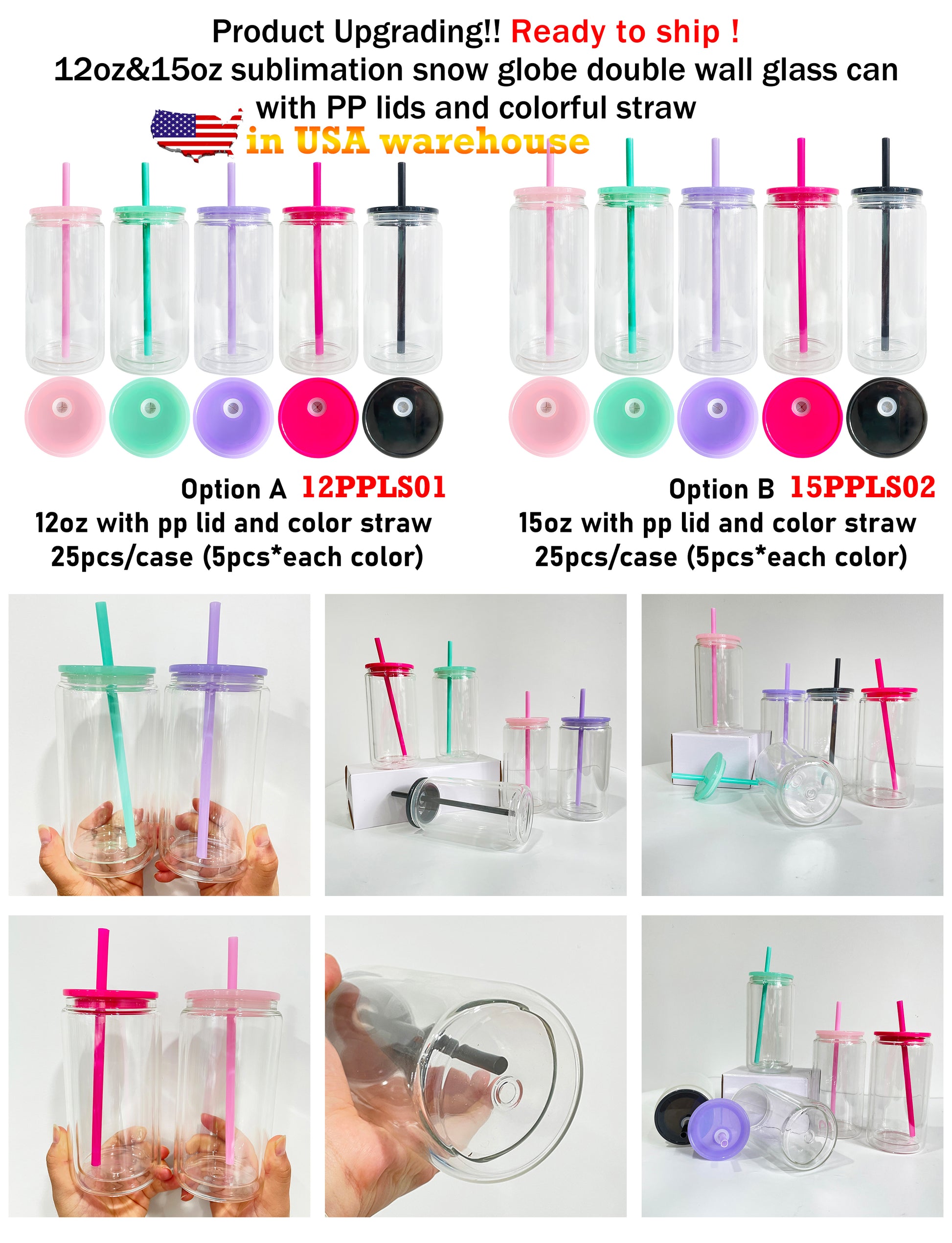 USA RTS_ Sublimation Double Wall Snow Globe Glass Cans with Plastic Lid_ miki