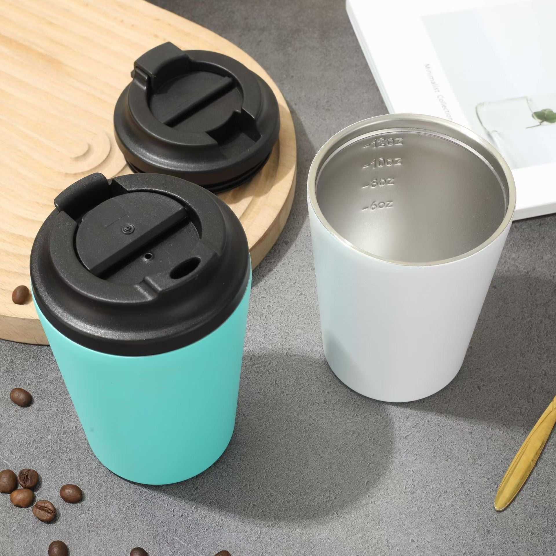 powder coated 8oz 12oz double walled vacuum insulated coffee mugs with Spill Proof lid _miki