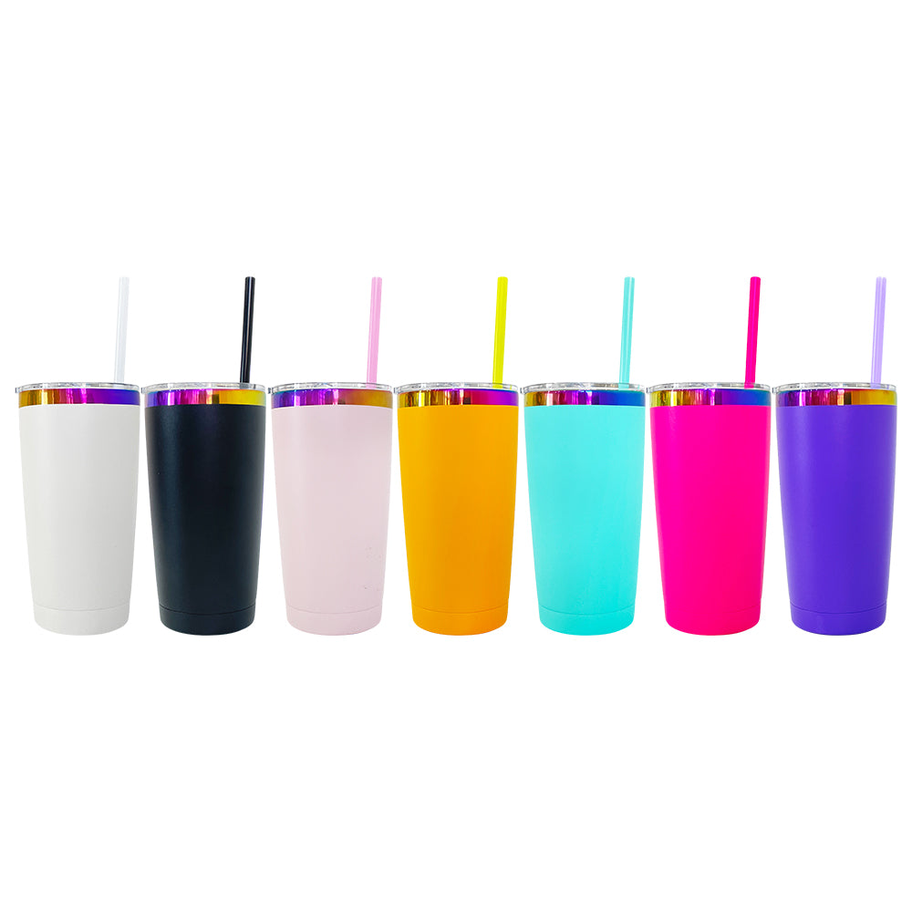 USA RTS_ Powder Coated 20oz Rainbow Case Car Tumbler With Lid and Colored Straw for Laser Engraving_miki