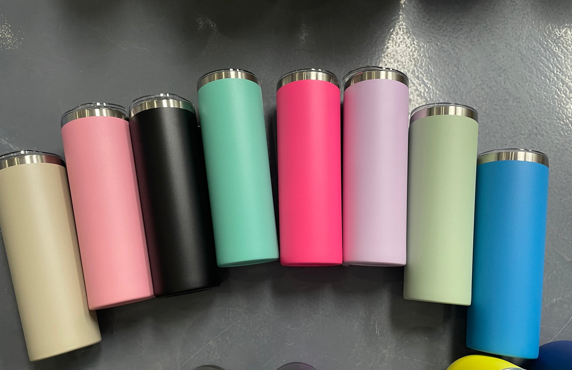 powder coated 20oz straight skinny tumbler with lid and straw regular color for engraving_miki