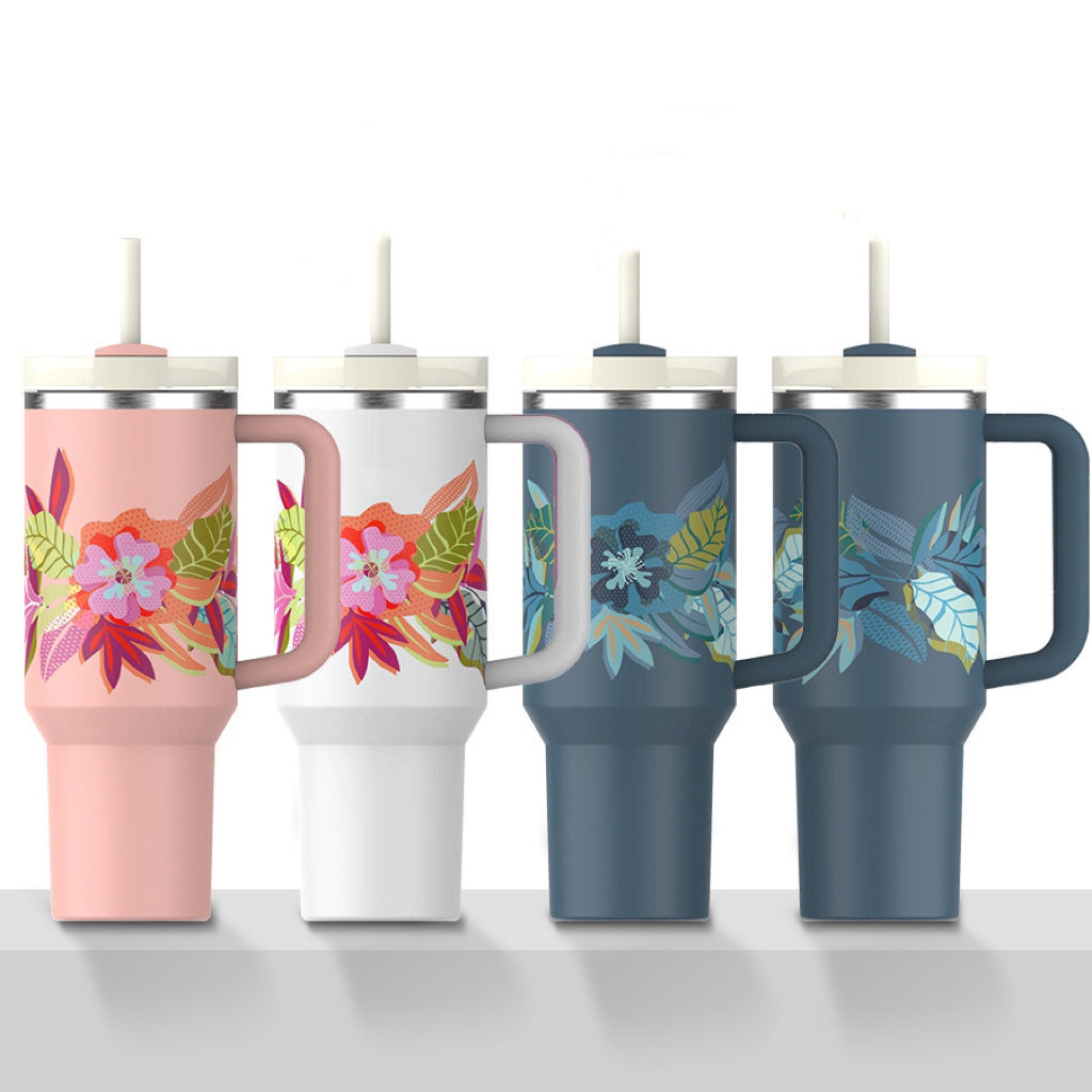 Powder Coated 5D Flower Printed 40oz Stainless Steel Quencher Tumblers with Lid and Removable Handle_ miki