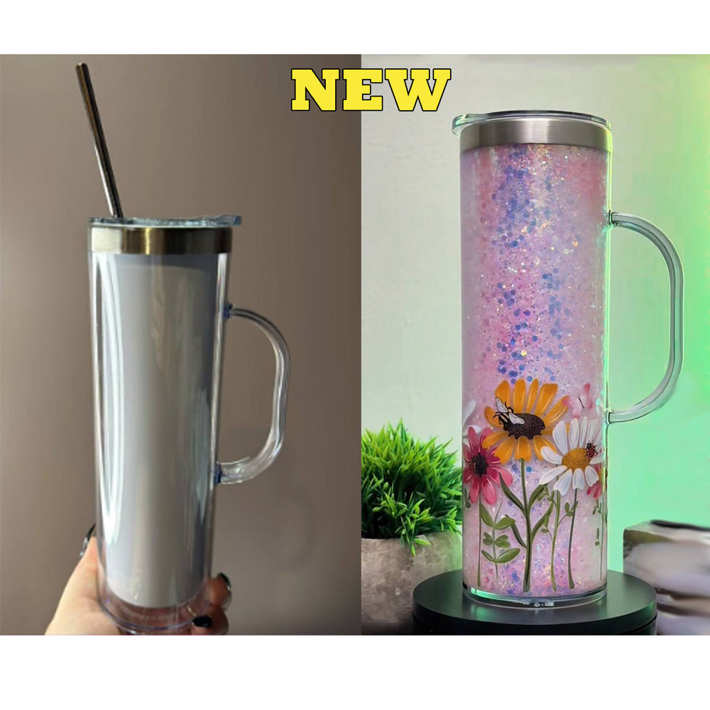 Pre-Drilled Sublimation White 20oz Double Walled Stainless Steel Snow Globe Tumbler with Handle, Lid and Straw _ miki