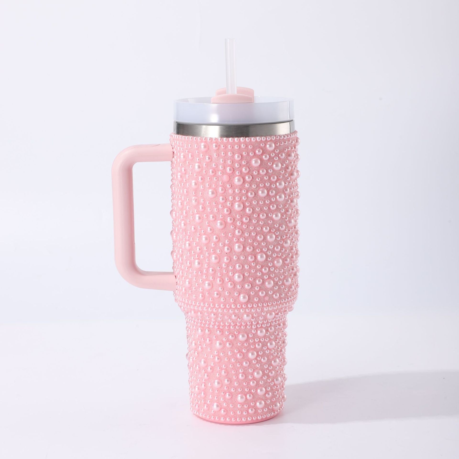 Rhinestone Pearl 40oz Quencher Tumbler With Handle,Lid And Straw_miki