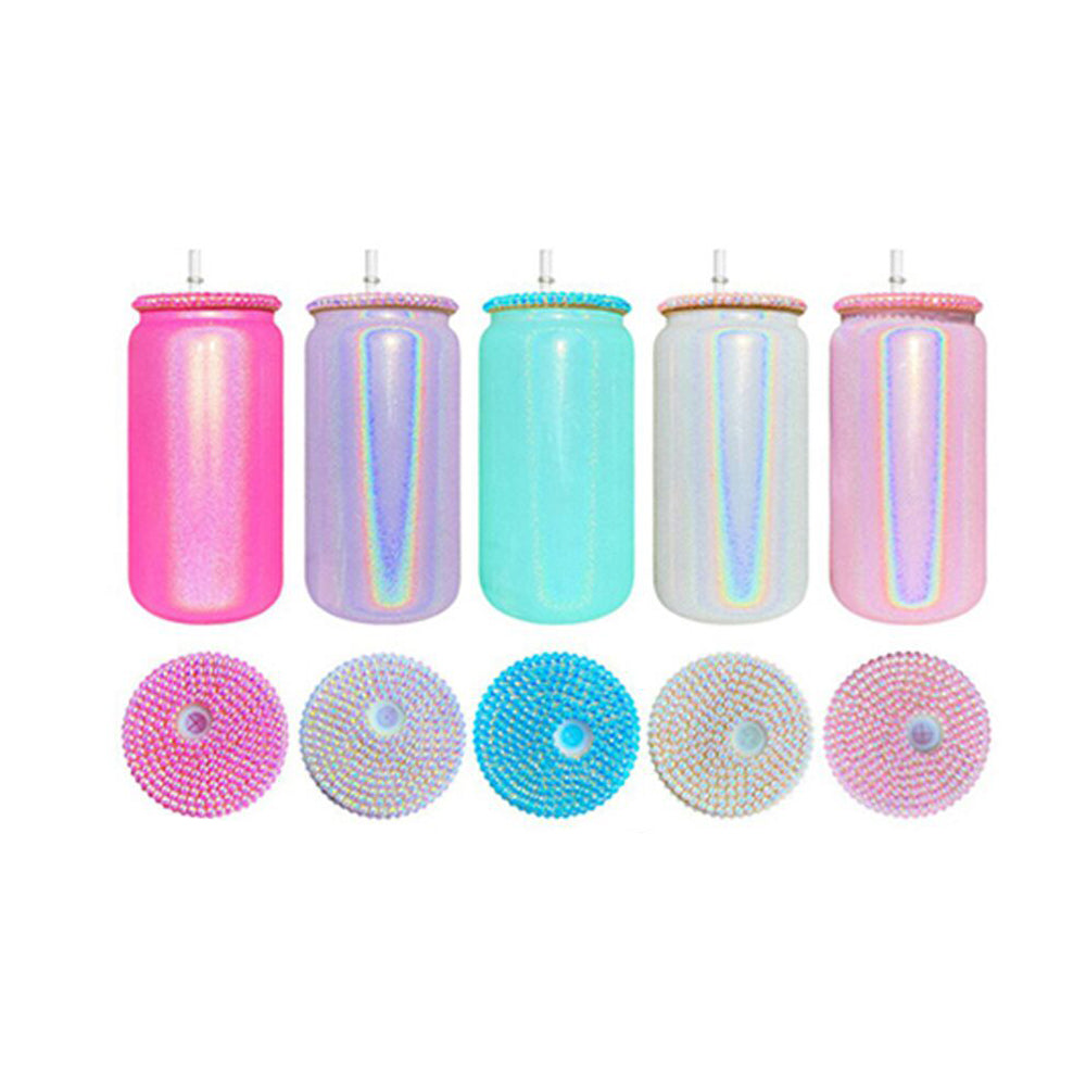 USA RTS_ Sublimation 16oz Shimmer Glass Cans with Bling Lids_ miki
