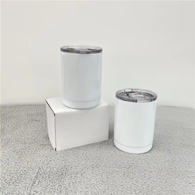 USA Presale_ Sublimation White 10oz Double Walled Stainless Steel Lowball Mugs with Lid_ miki
